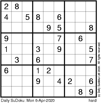 The Daily SuDoku: Mon 6-Apr-2020
