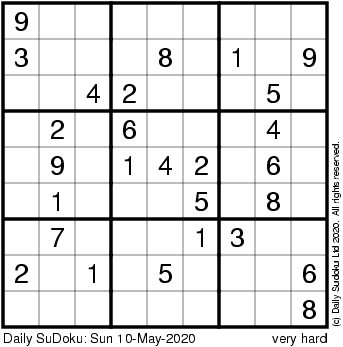 The Daily SuDoku: Sun 10-May-2020