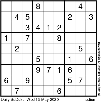 The Daily SuDoku: Wed 13-May-2020