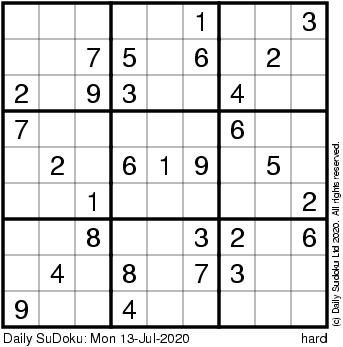 The Daily SuDoku: Mon 13-Jul-2020