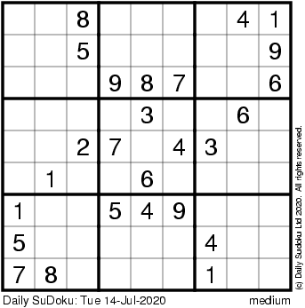 The Daily SuDoku: Tue 14-Jul-2020