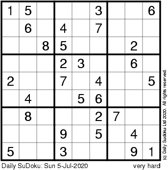 The Daily SuDoku: Sun 5-Jul-2020