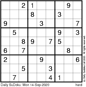 The Daily SuDoku: Mon 14-Sep-2020