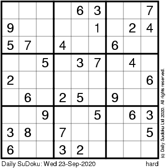The Daily SuDoku: Wed 23-Sep-2020