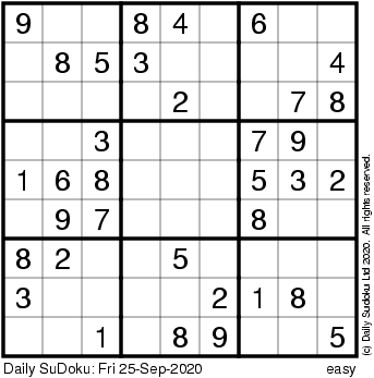 The Daily SuDoku: Fri 25-Sep-2020