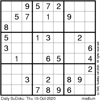 The Daily SuDoku: Thu 15-Oct-2020