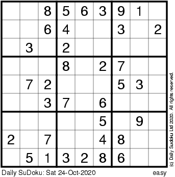 The Daily SuDoku: Sat 24-Oct-2020