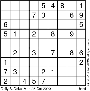 The Daily SuDoku: Mon 26-Oct-2020