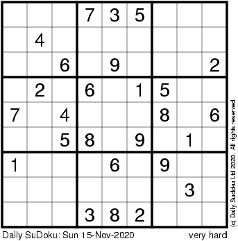 The Daily SuDoku: Sun 15-Nov-2020