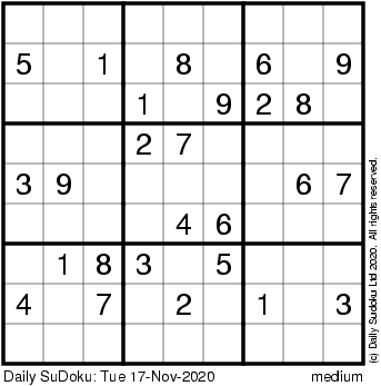 The Daily SuDoku: Tue 17-Nov-2020