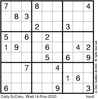 The Daily SuDoku: Wed 18-Nov-2020
