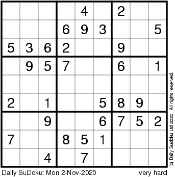 The Daily SuDoku: Mon 2-Nov-2020