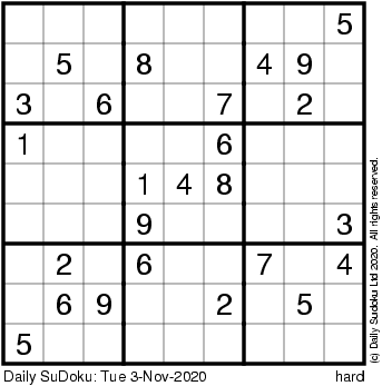 The Daily SuDoku: Tue 3-Nov-2020