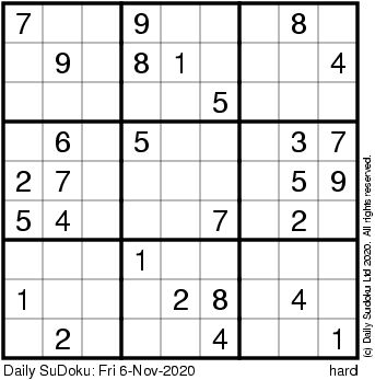 The Daily SuDoku: Fri 6-Nov-2020