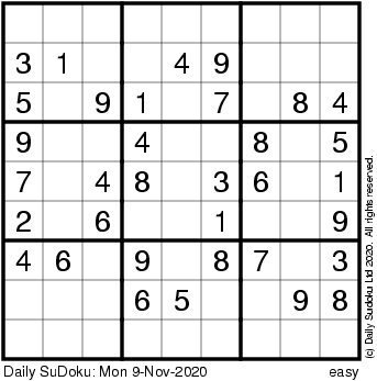 The Daily SuDoku: Mon 9-Nov-2020