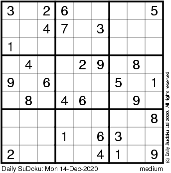 The Daily SuDoku: Mon 14-Dec-2020