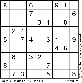 The Daily SuDoku: Thu 17-Dec-2020