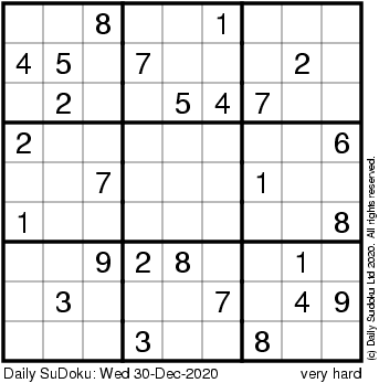 The Daily SuDoku: Wed 30-Dec-2020