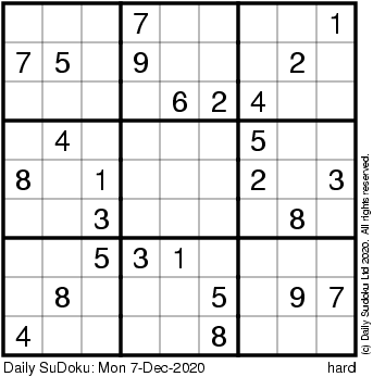 The Daily SuDoku: Mon 7-Dec-2020