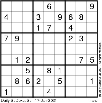The Daily SuDoku: Sun 17-Jan-2021