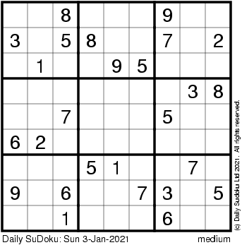 The Daily SuDoku: Sun 3-Jan-2021