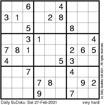 The Daily SuDoku: Sat 27-Feb-2021