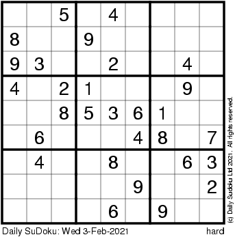 The Daily SuDoku: Wed 3-Feb-2021