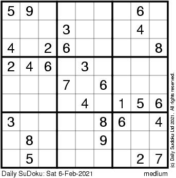 The Daily SuDoku: Sat 6-Feb-2021