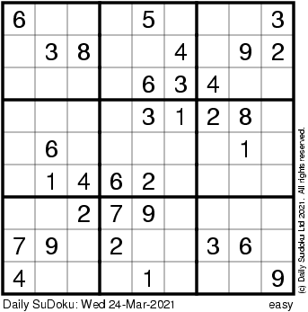 The Daily SuDoku: Wed 24-Mar-2021