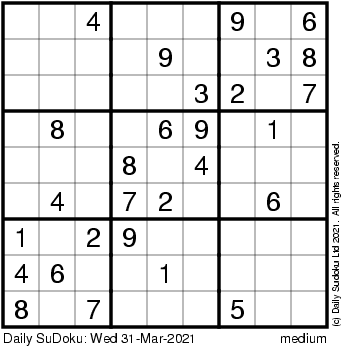 The Daily SuDoku: Wed 31-Mar-2021