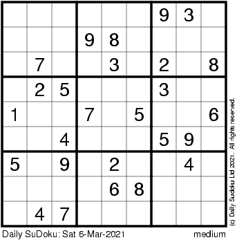 The Daily SuDoku: Sat 6-Mar-2021