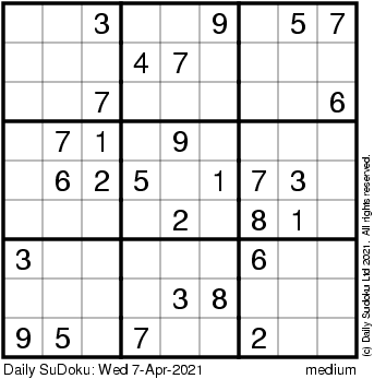 The Daily SuDoku: Wed 7-Apr-2021
