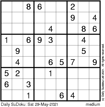 The Daily SuDoku: Sat 29-May-2021