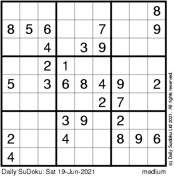 The Daily SuDoku: Sat 19-Jun-2021