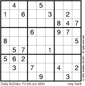 The Daily SuDoku: Fri 25-Jun-2021