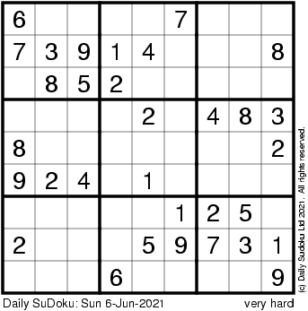 The Daily SuDoku: Sun 6-Jun-2021