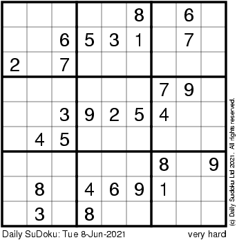 The Daily SuDoku: Tue 8-Jun-2021