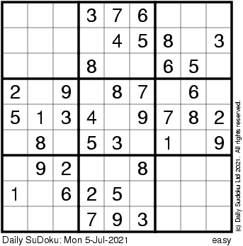 The Daily SuDoku: Mon 5-Jul-2021