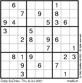 The Daily SuDoku: Thu 8-Jul-2021