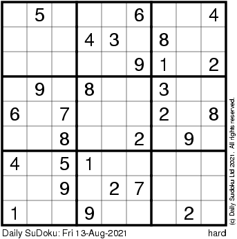 The Daily SuDoku: Fri 13-Aug-2021