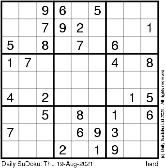 The Daily SuDoku: Thu 19-Aug-2021