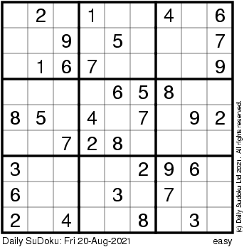 The Daily SuDoku: Fri 20-Aug-2021