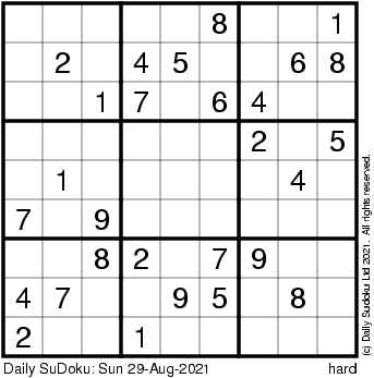 The Daily SuDoku: Sun 29-Aug-2021