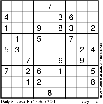 The Daily SuDoku: Fri 17-Sep-2021