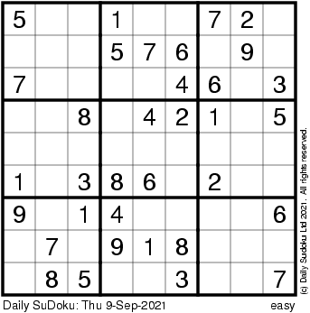 The Daily SuDoku: Thu 9-Sep-2021