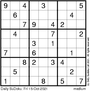 The Daily SuDoku: Fri 15-Oct-2021