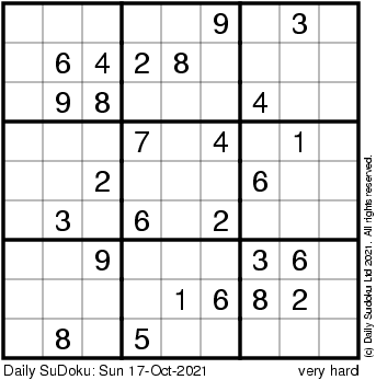 The Daily SuDoku: Sun 17-Oct-2021