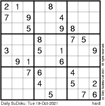 The Daily SuDoku: Tue 19-Oct-2021