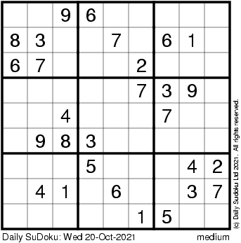 The Daily SuDoku: Wed 20-Oct-2021