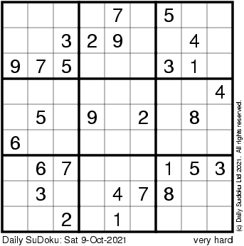 The Daily SuDoku: Sat 9-Oct-2021